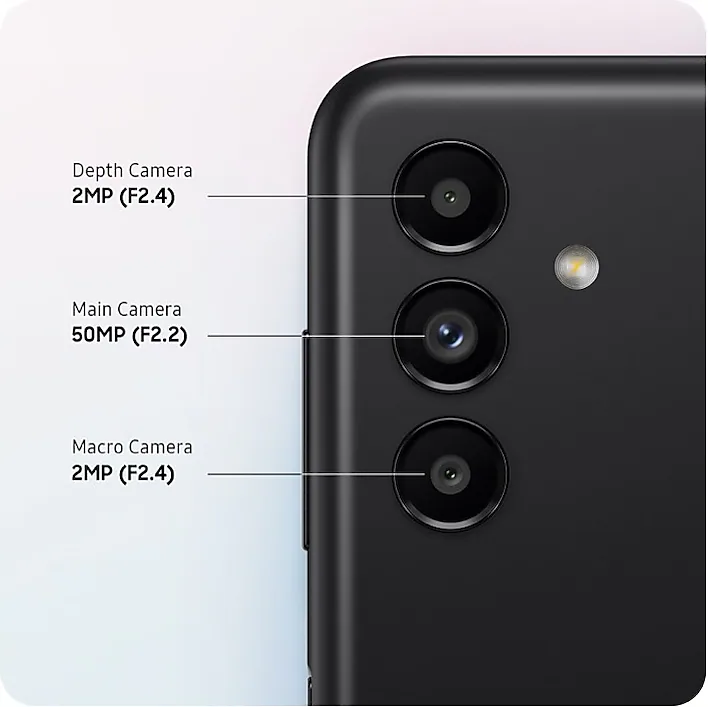 At the back, Samsung has included a triple camera setup. It consists of a 13MP primary sensor accompanied by two 2MP sensors for portrait and macro shots. On the front, the Infinity-V notch houses a 5MP selfie shooter.