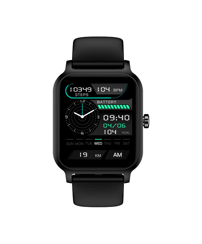 Speaking of the build, it features a Zinc Alloy textured frame, a plastic base, and a silicone strap. Also, in the middle of the right frame, there’s a circular button for navigation. The watch is lightweight and has an IP68 rating, meaning it can handle dust and a quick dunk in water. Plus, it comes in 4 colors i.e., blue, black, pink, and grey to add a lively touch to style.